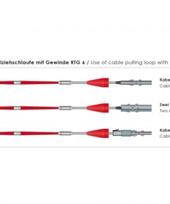 O laço para puxar o cabo (Ø 14 mm externo) com ajuste de torção integrado e tampa protetora incluída, pode ser usado para um ou mais cabos, até um diâmetro de Ø 12 mm. Fixação rápida dos cabos ao laço. Quaisquer fichas são protegidos pela carga de tração no cabo.